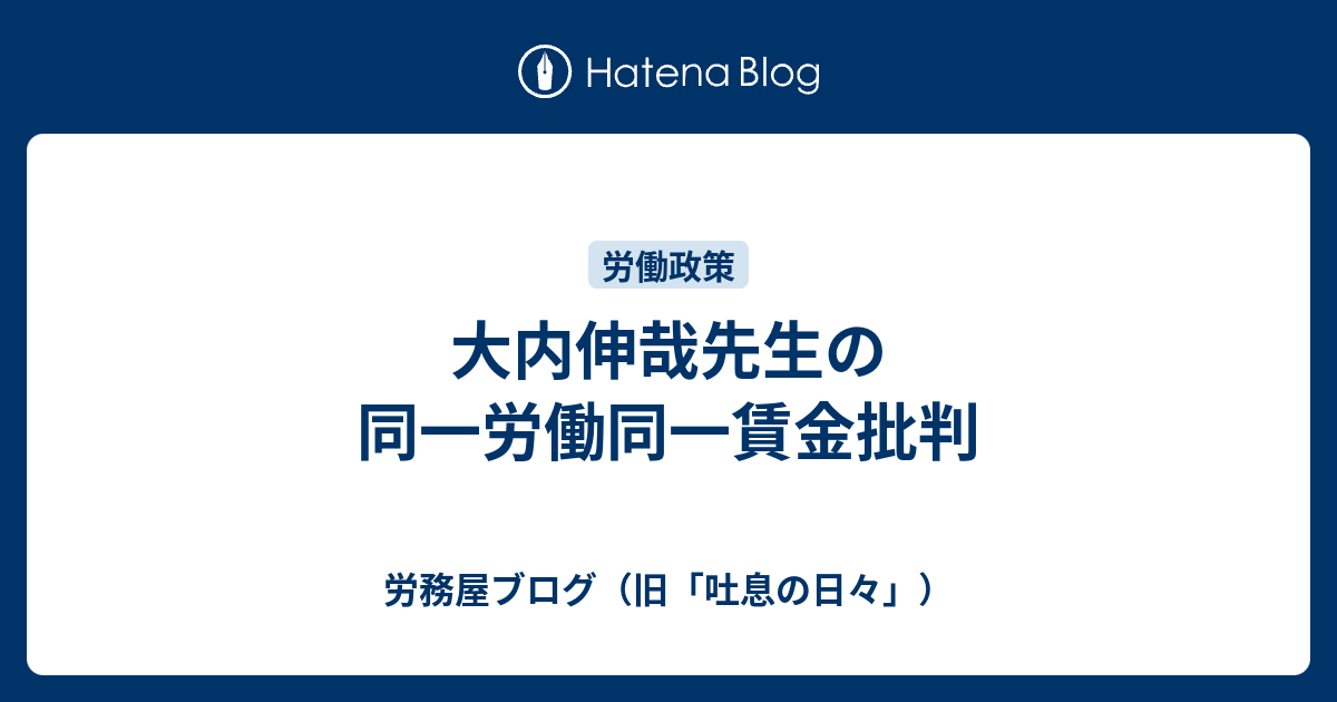 大内伸哉先生の同一労働同一賃金批判 労務屋ブログ 旧 吐息の日々