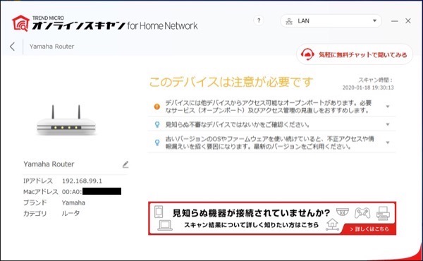オンラインスキャン For Home Network で家庭lanの機器の問題を検知する